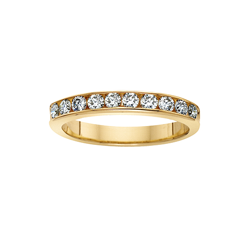 14k yellow gold Anniversary Band with ten channel set diamonds These bands can be worn alone, or added to you’re wedding stack! Available in weights 1/4ctw, 1/2cttw, 3/4cttw, 1cttw, and 1.5cttw.