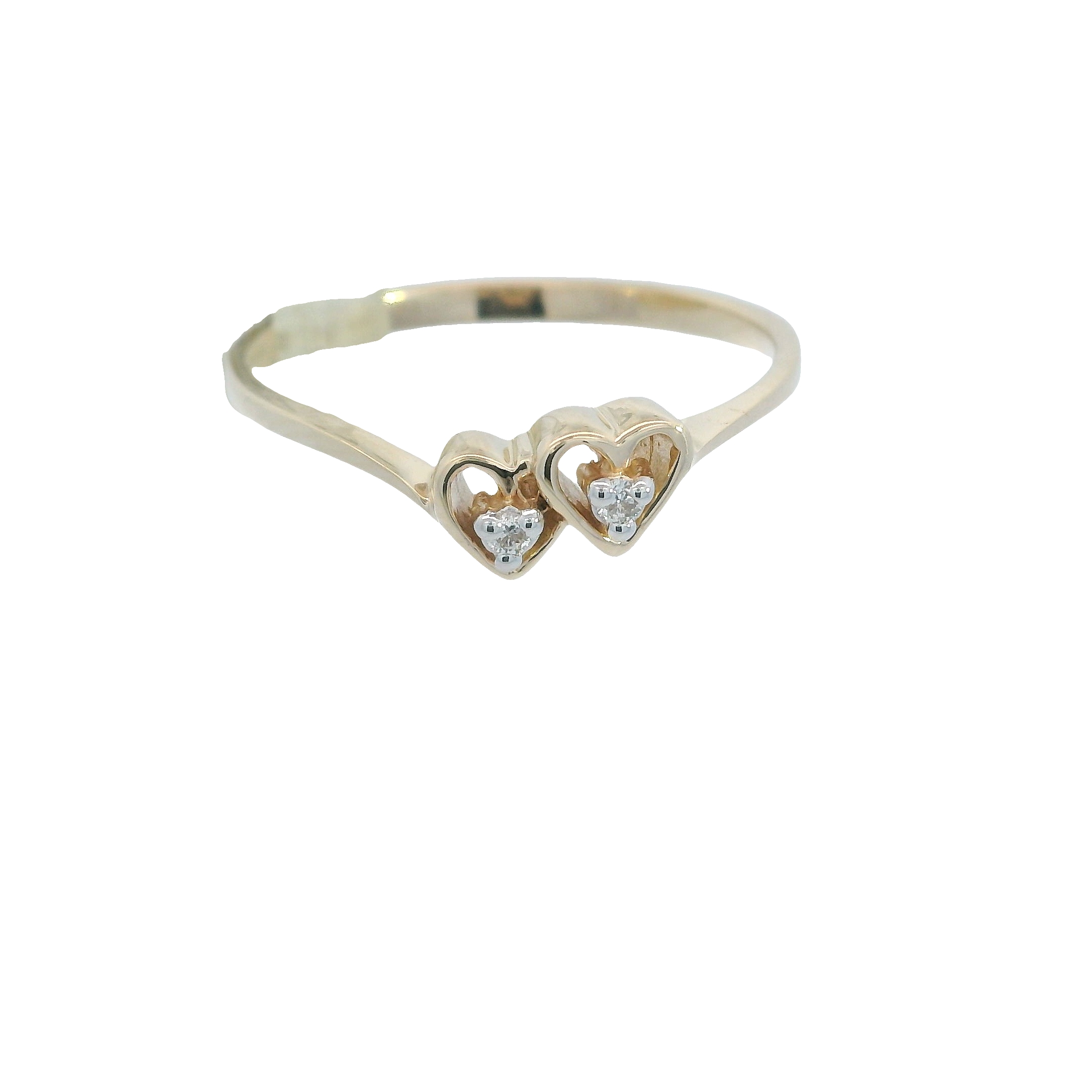 Seal your commitment with this romantic 10K yellow gold promise ring. Featuring two delicate hearts adorned with .02ctw diamonds, this ring is a beautiful symbol of love and devotion. Perfect for expressing your heartfelt promise.