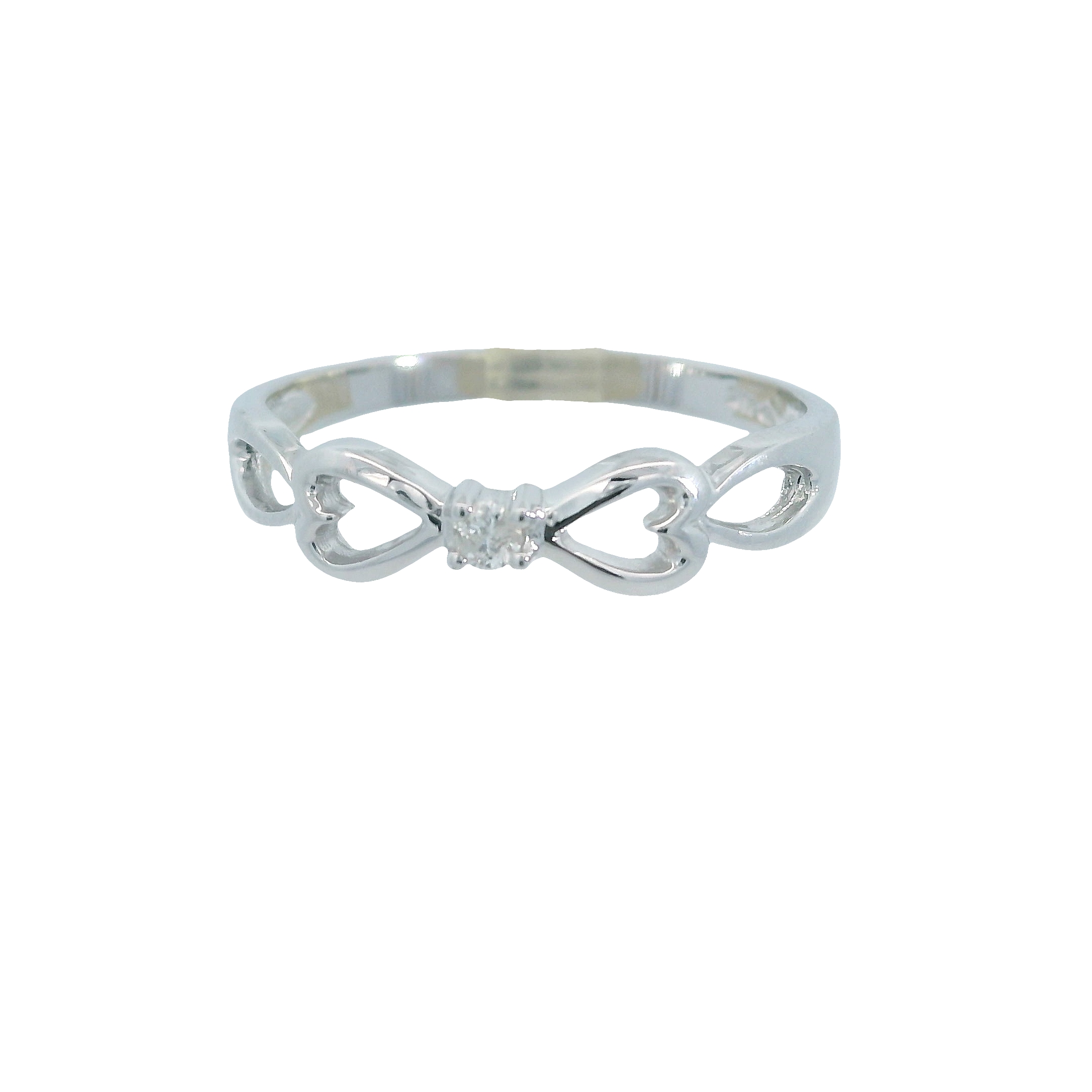 Express your devotion with this REGO 14KW promise ring. Featuring a delicate .03ctw diamond nestled between double heart designs, it symbolizes a bond that will last forever. A perfect token of your love.
