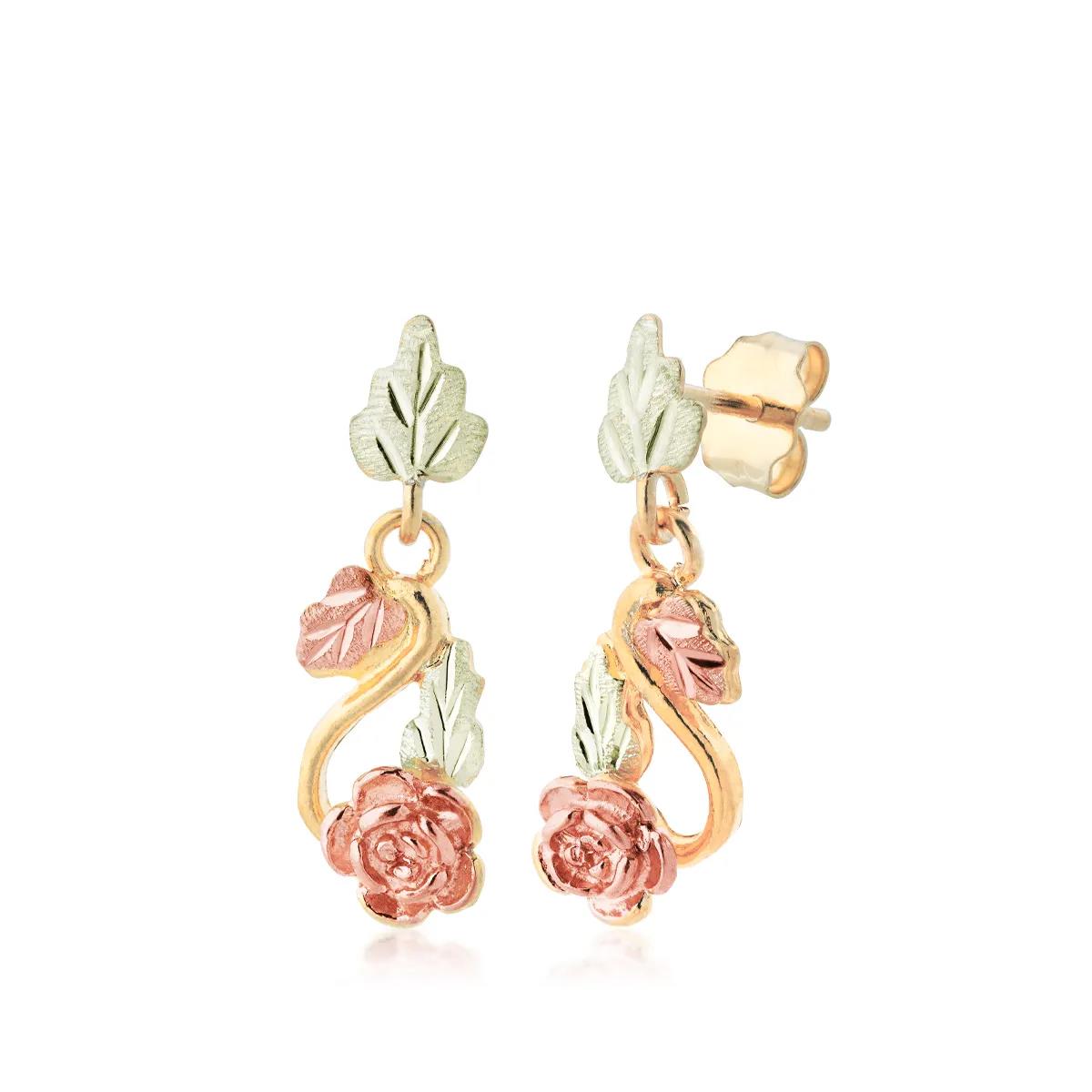 Adorn yourself with these elegant 10K gold post earrings featuring the distinctive Black Hills gold rose design. They showcase delicate leaves and a beautiful rose detail.