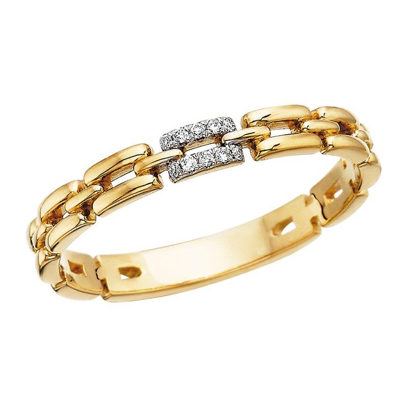 This BERCO fashion ring features a unique link design crafted in 10K yellow gold. Sparkling diamonds, totaling .03 carats, are set within the links, adding a touch of subtle brilliance.