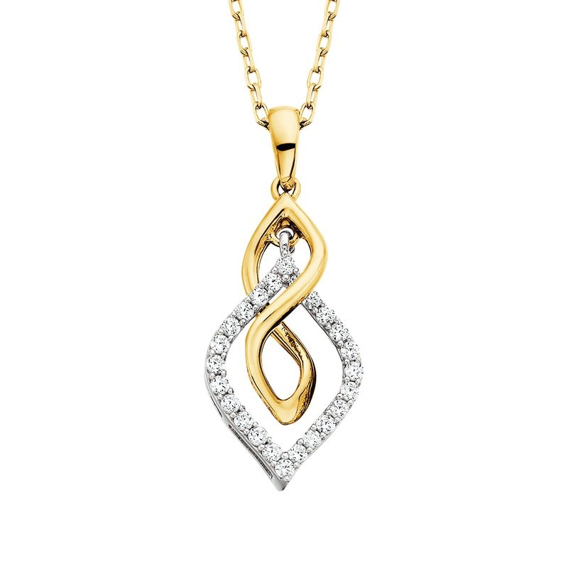 Dazzle with this exquisite Berco two-tone pendant. Crafted in 10k gold, it features a delicate dangle design adorned with shimmering diamonds totaling 0.15 carats. Perfect for adding a touch of elegance to any outfit. Matching earrings availble
