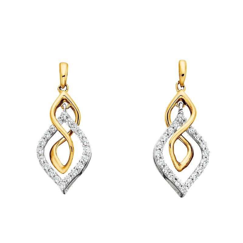 Dazzle with these two-toned 10k gold dangle earrings. Featuring 0.20cttw of sparkling diamonds, these earrings add an elegant touch to any look. A matching pendant is also available to complete the set.