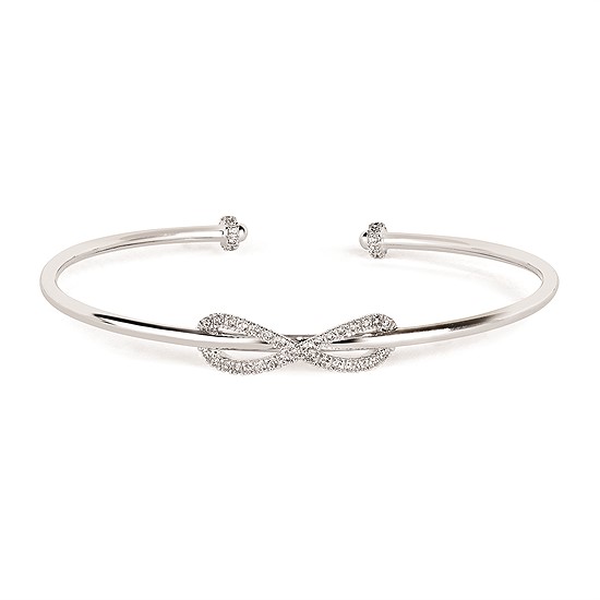 This elegant 14k white gold infinity bracelet showcases a dazzling .39ctw of diamonds. Its sleek design and brilliant sparkle make it the perfect addition to any jewelry collection.