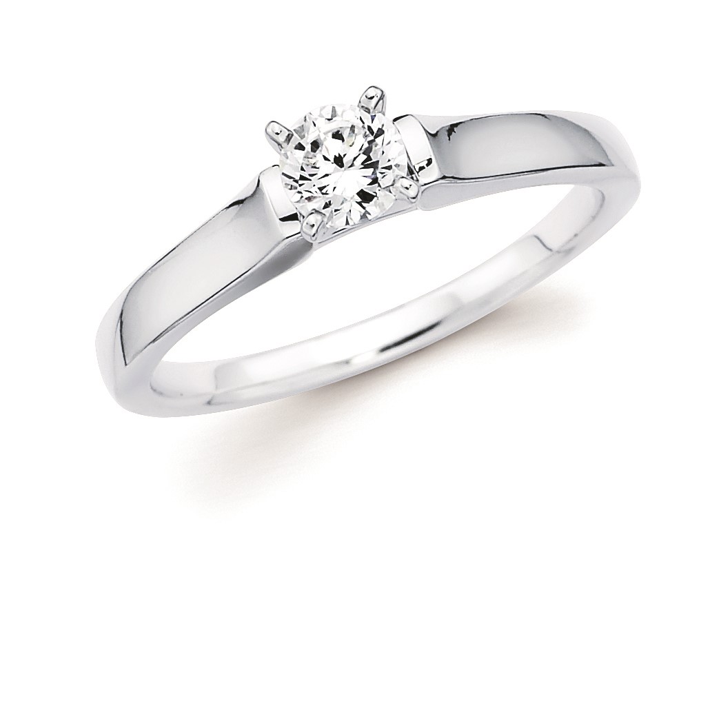 Home Catalog Say "yes" with this Ostbye solitaire engagement ring. A classic cathedral setting showcases a brilliant .30ct round diamond in polished 14k white gold.