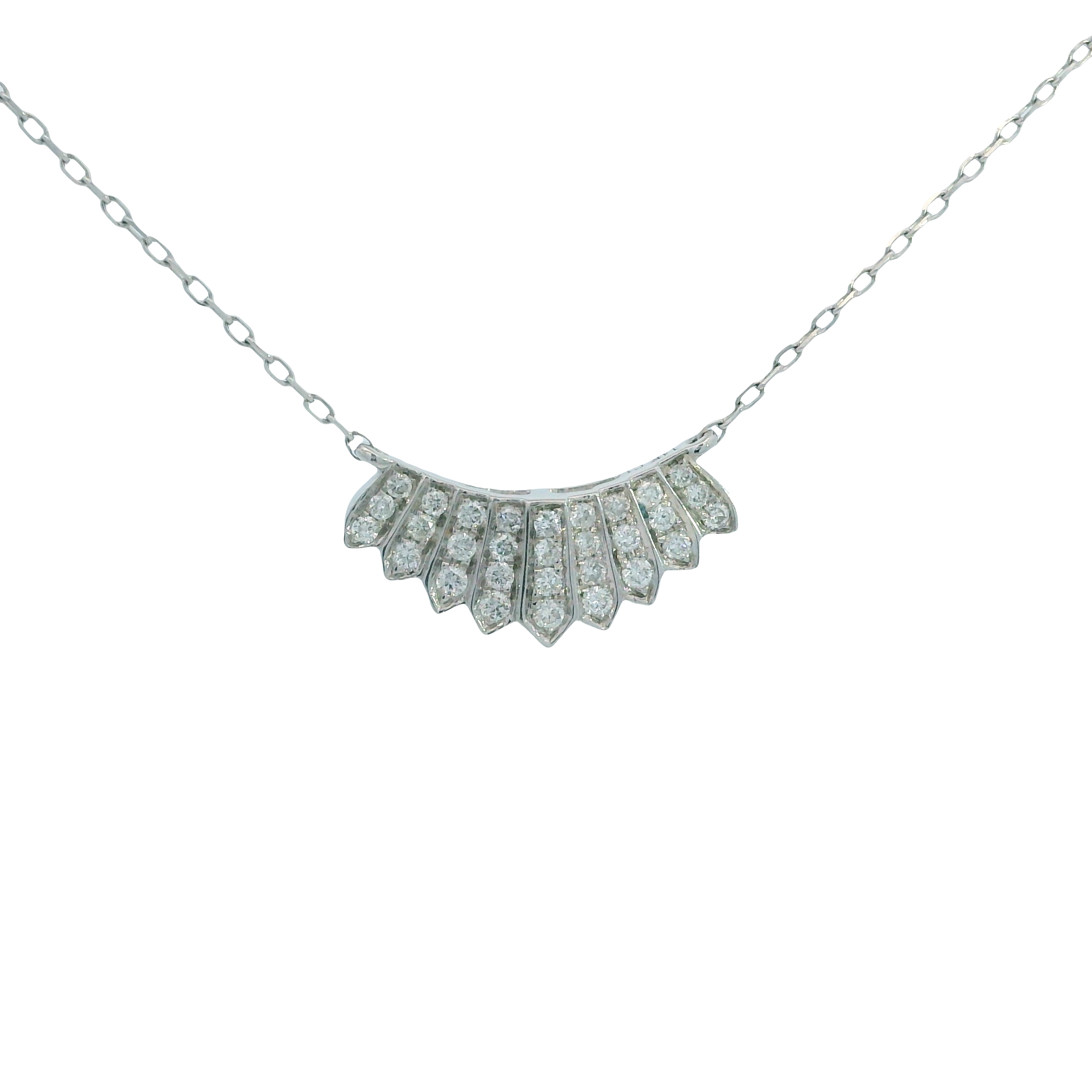Radiate sophistication with this 14k white gold fan bar necklace. This elegant pendant features a unique curved design set with 0.17 carats of brilliant diamonds. Suspended from a stylish 18-inch split chain, it’s a modern yet timeless addition to any jewelry collection, perfect for day or night.
