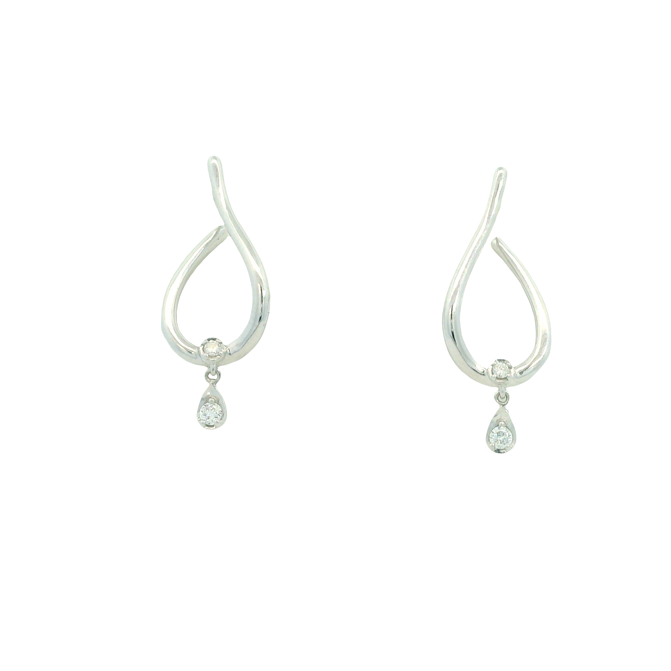 Elevate your style with these elegant 14k white gold earrings, featuring a unique freeform design and 0.08 cttw of shimmering diamonds. Their fluid, artistic curves and delicate diamond drops create a sophisticated look, making them the perfect contemporary accessory for adding a touch of sparkle to any occasion.