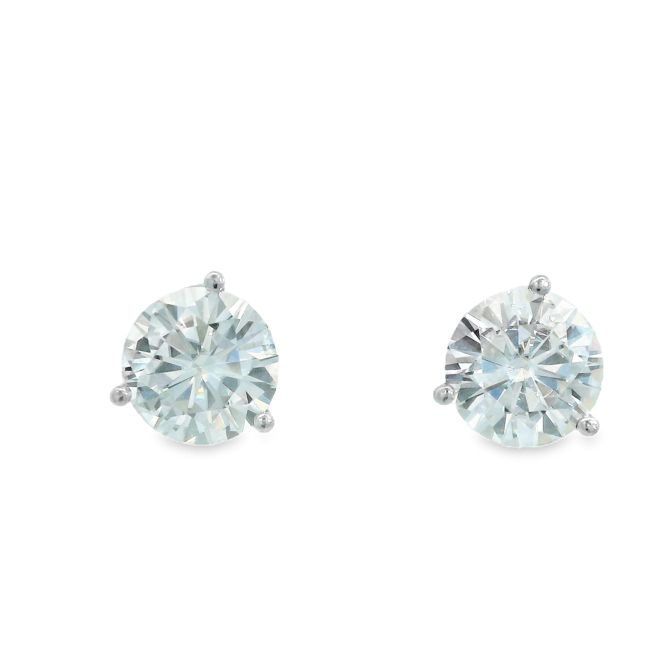 Add a touch of elegance with these RJO Stuller Settings Inc. earrings. These 14K white gold earrings feature brilliant Moissanite stones, each equivalent to 4 carats in size. The perfect touch for any occasion.