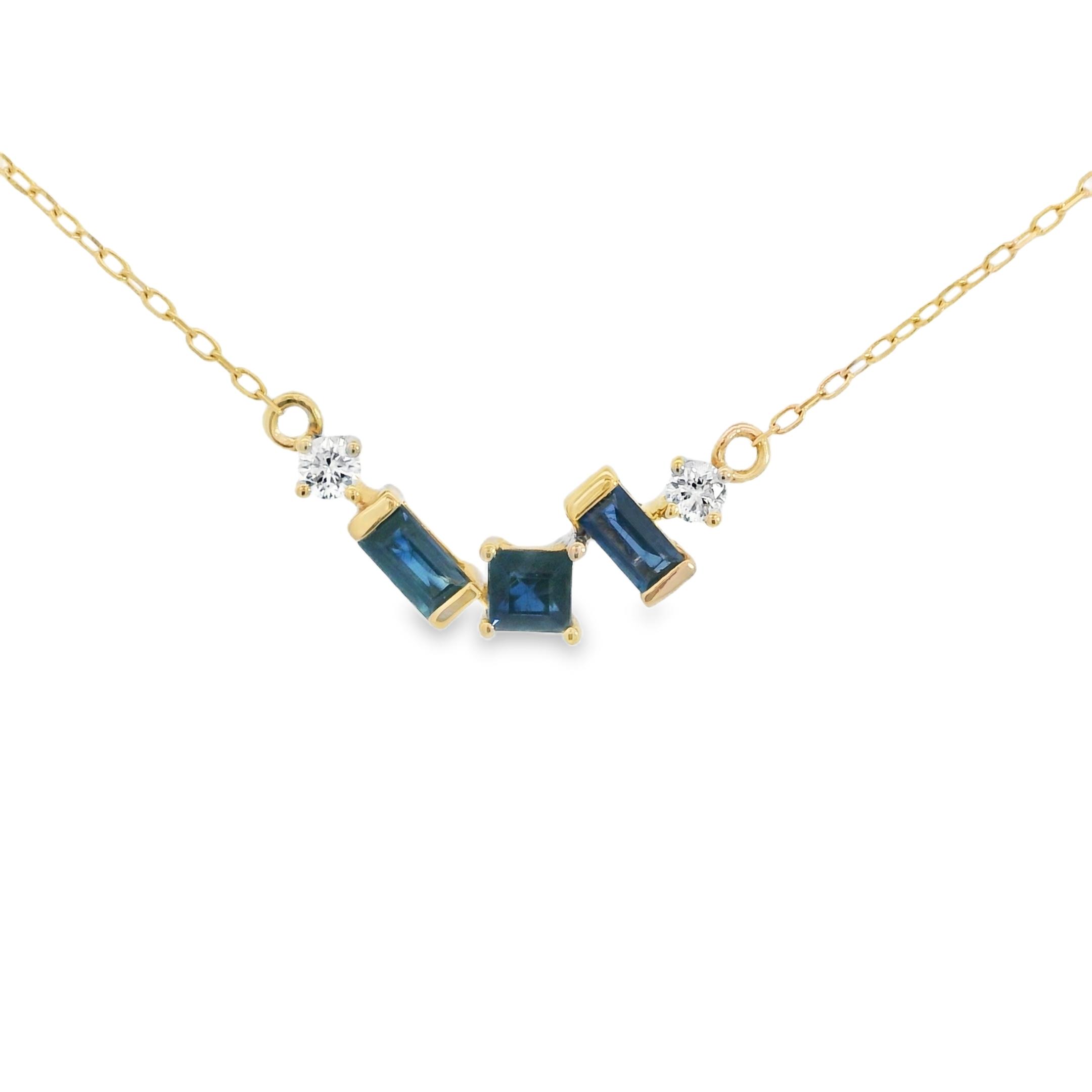 Elevate your style with this stunning 14k yellow gold necklace. The pendant features sapphire stones accented by sparkling diamonds. It’s the perfect, elegant touch for any outfit.
