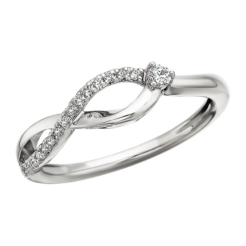 This elegant ring features a freeform design in 14k white gold, adorned with 0.15cttw of sparkling diamonds. A sophisticated choice, also available as a matching pendant and earrings.