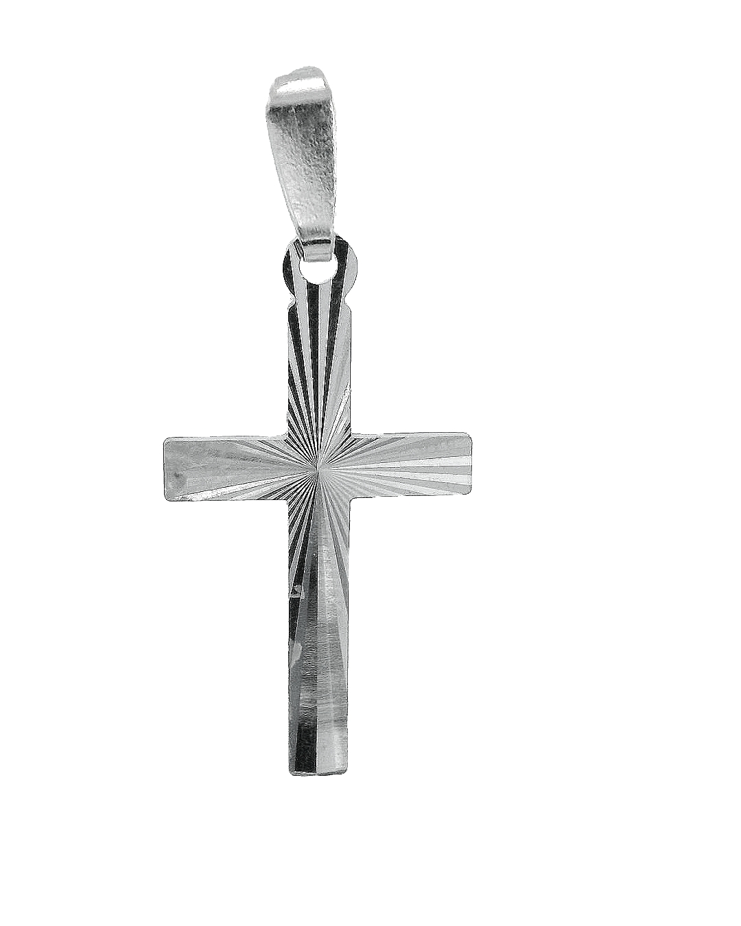 Adorn yourself with this exquisite 14K white gold cross pendant. The medium-sized starburst design adds a touch of radiant elegance to this timeless piece, perfect for expressing your faith.