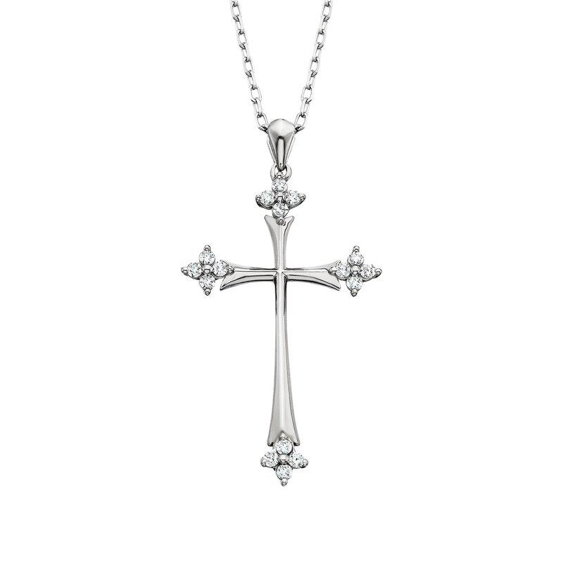 This 10K white gold cross necklace features dazzling .13 carat total weight diamonds. A beautiful and timeless piece, perfect for everyday wear or special occasions.