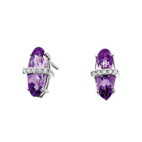 Elegant BERCO earrings featuring vibrant amethyst stones. Crafted in 14K white gold and accented with .04ctw diamonds, these earrings offer a touch of sophistication and color to any ensemble. Perfect for adding a subtle sparkle.