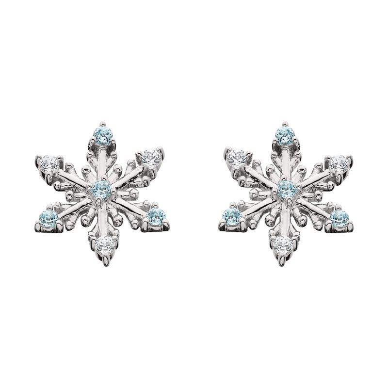 Sterling Silver Blue and White Topaz Snowflake Earrings