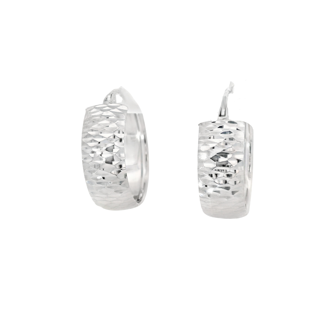 Elevate your look with these chic, small hoop earrings. Crafted in 14k white gold, they feature a wide, hammered finish that adds a touch of modern sophistication.