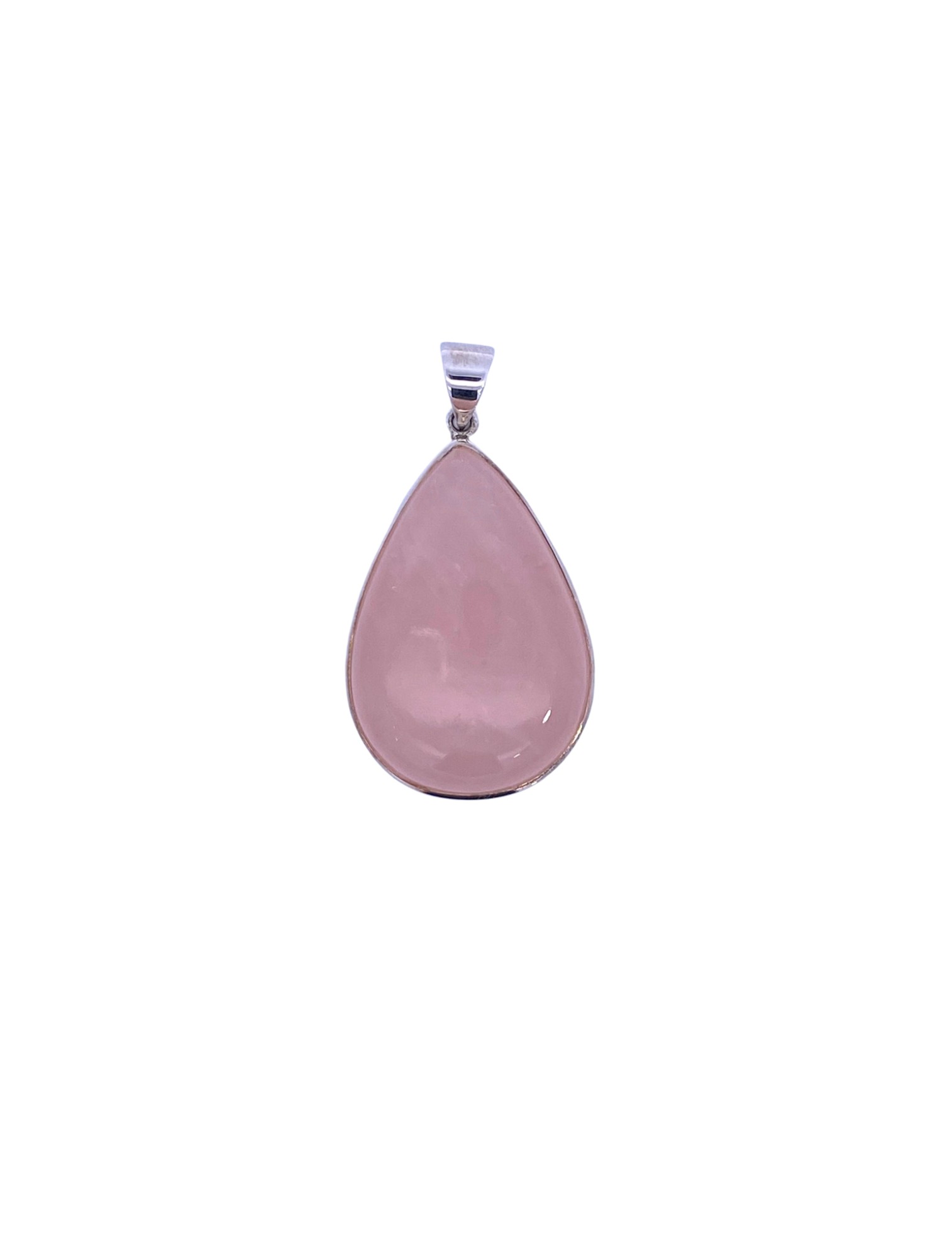 Adorn yourself with this Rose Quartz pendant. The teardrop shape of the pale pink stone is beautifully set in sterling silver. Look for matching pieces to complete your look. Chain is not included