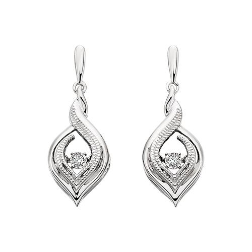 These sterling silver “Diamond Dancer” earrings feature a delicate teardrop design. A sparkling .05 total weight diamond dances within the openwork setting, adding a touch of elegance and movement to any look.