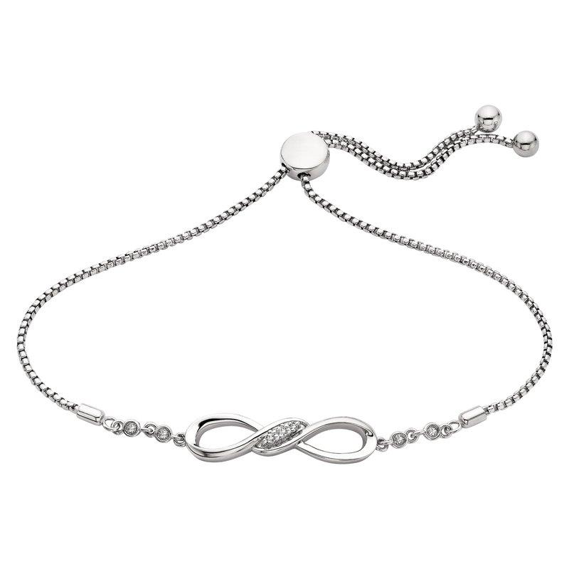 Sterling Silver Infinity Bolo Bracelet with White Topaz Accents