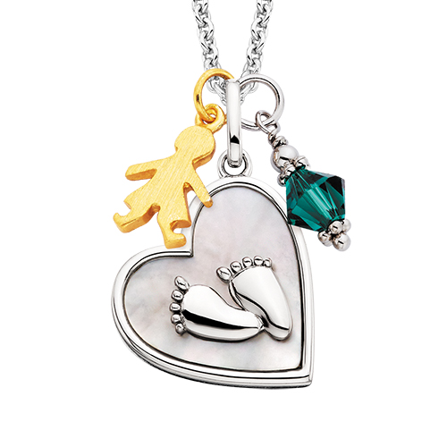 Celebrate new beginnings with this charming BERCO pendant. Crafted in stainless steel, the heart-shaped pendant features precious mother-of-pearl and adorable baby footprints. This necklace is a sweet reminder of a special little one.