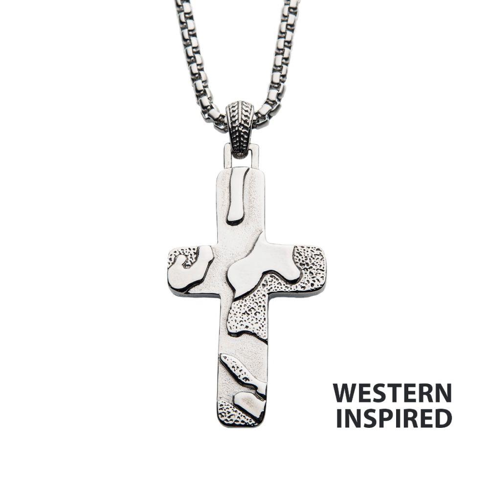 Show your faith with this cross pendant. Crafted in stainless steel, this striking pendant features a matte canyon pattern and includes a 24-inch chain.