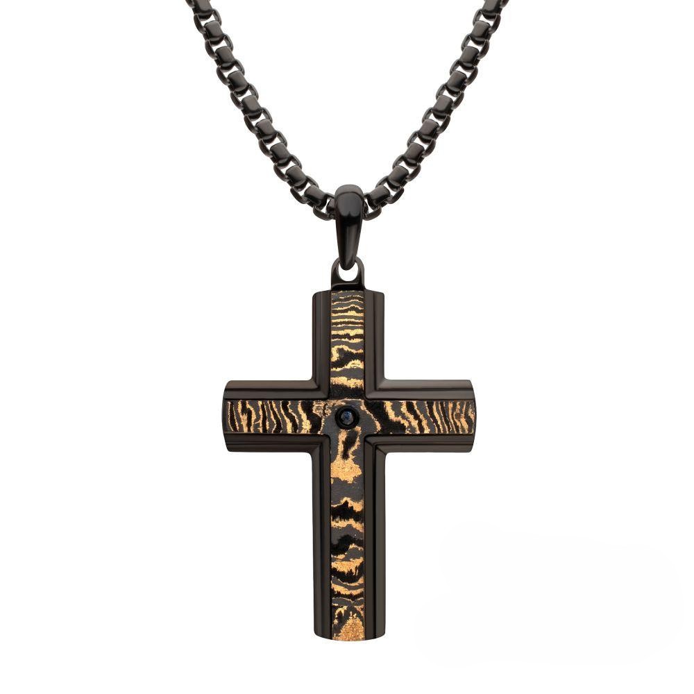 Black Stainless Steel Cross with Copper and Black Sapphire