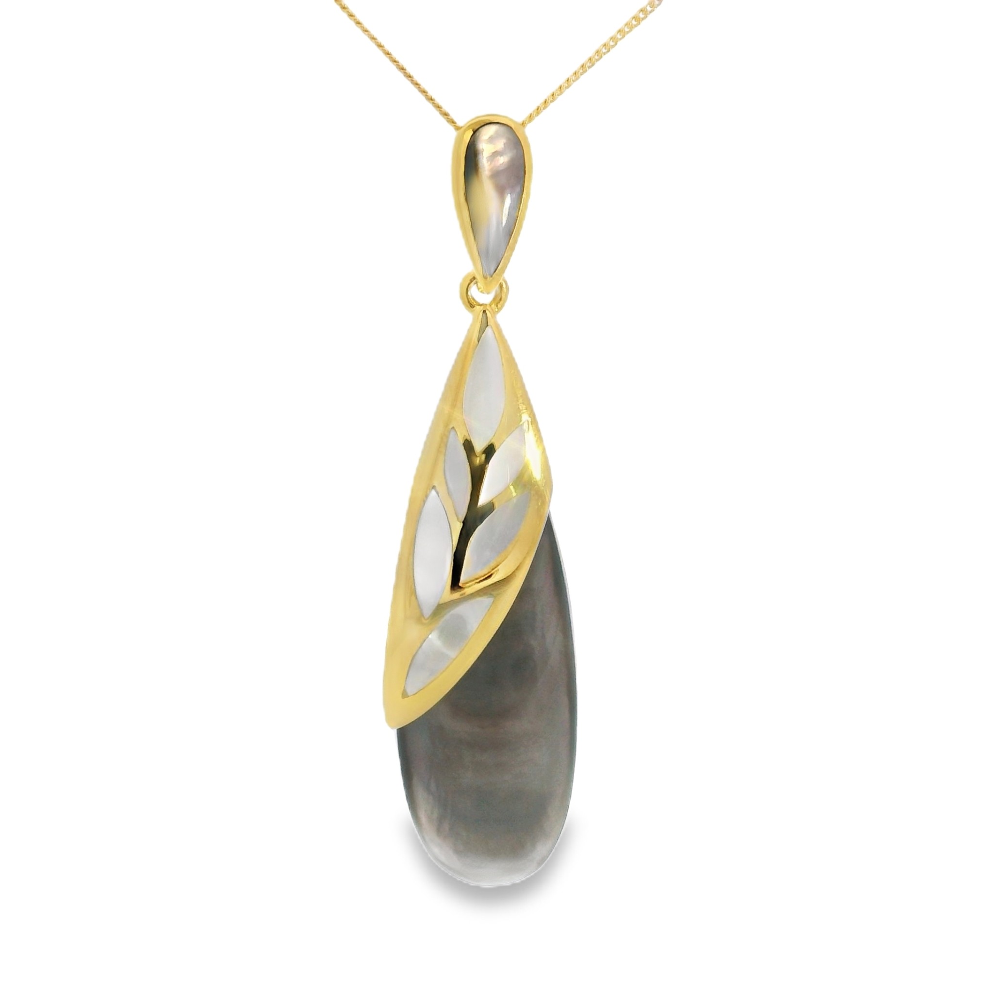 Adorn yourself with this elegant gold-plated pendant featuring a teardrop of mother-of-pearl. Its unique leaf-like design adds a touch of sophistication and natural beauty to any outfit.