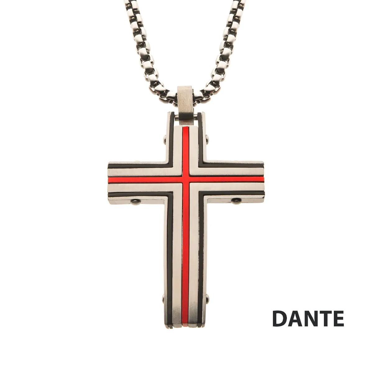 Showcase your style with this stainless steel cross pendant. Featuring bold red and black accents, this striking piece comes complete with a 24-inch chain. A modern design that’s sure to turn heads.