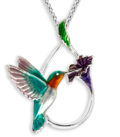 Sterling Silver and Enamel Humming Bird Pendant