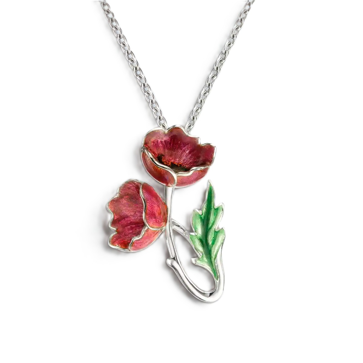 Adorn yourself with this charming Sterling Silver Poppy. The hand-painted enamel brings vibrant color and intricate detail to this floral piece, creating a captivating and timeless accessory.