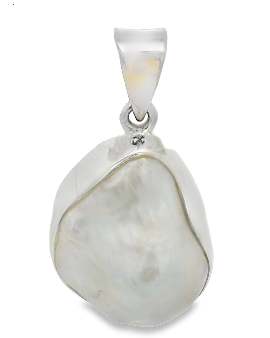 Adorn yourself with this stunning freshwater pearl pendant. Its classic pear shape, encased in sterling silver, exudes timeless elegance and subtle sophistication. A perfect addition to any jewelry collection.