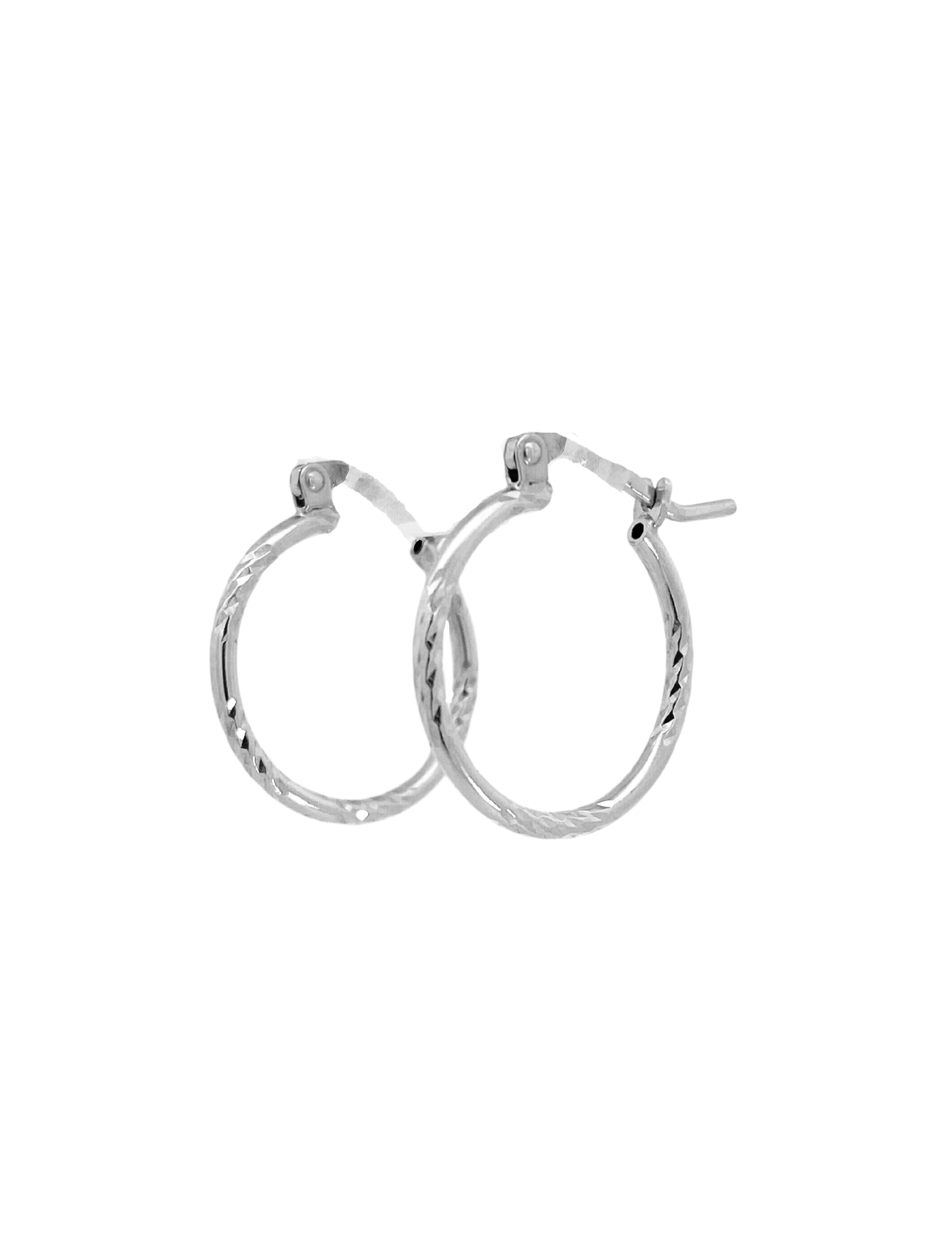 These simple sterling silver hoop earrings are the perfect addition to any casual outfit. The subtle diamond cut design adds just the right amount of sparkle for everyday wear.